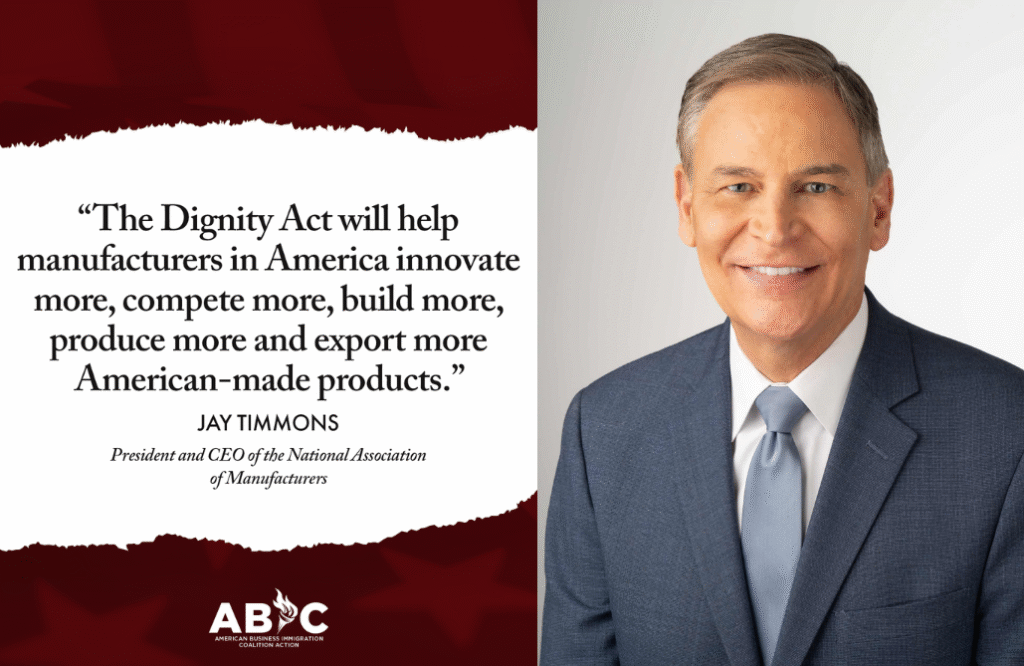 The National Association of Manufacturers (NAM), the nation’s leading voice for the U.S. manufacturing industry, endorsed the Dignity Act this week, marking a major show of support from the business community for a serious, bipartisan immigration solution to strengthen the U.S. workforce and sustain economic growth.